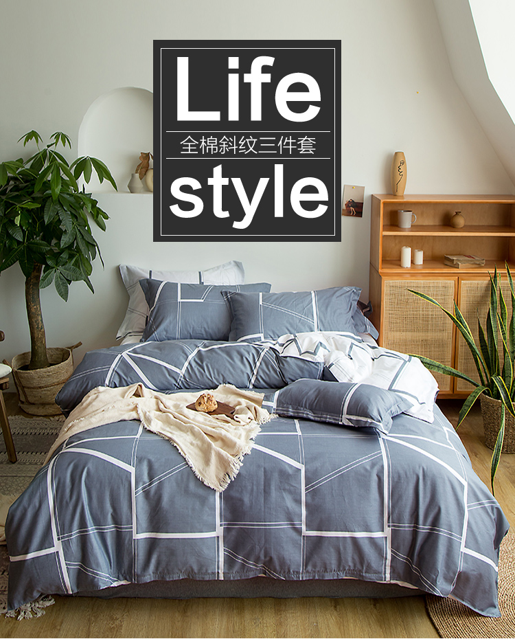 九洲鹿全綿保温三点セット純綿斜紋プリント寝具シングル学生布団カバー1.2 mベッド150*200 cm
