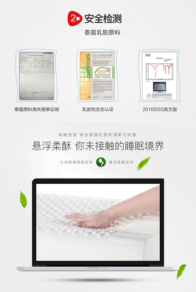 【九洲鹿枕】九洲鹿ラテックス枕芯タイラテックス枕カバーラテックス大人枕芯頚椎枕波モデル一対34*58 cm